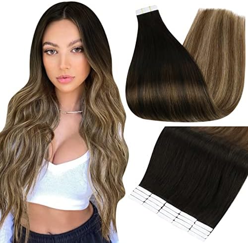Amazon Com Fshine Tape In Hair Extensions Balayage Seamless Remy Hair Extensions Color 1b Off Black Fading To 6 And 27 Honey Blonde 14 Inch Dip Dyed Tape In Extensions Human Hair 20